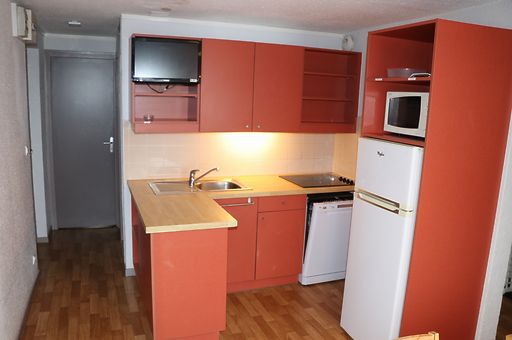 3-kamerappartement voor 5 personen 1 baby : - appartement van 40m² voor vijf personen (en 1 baby) met een woonkamer met keukenhoek, een slaapkamer met een tweepersoonsbed (160x190), een slaapkamer met een eenpersoonsbed (80x190) en twee stapelbedden (80x190), een doucheruimte en een toilet